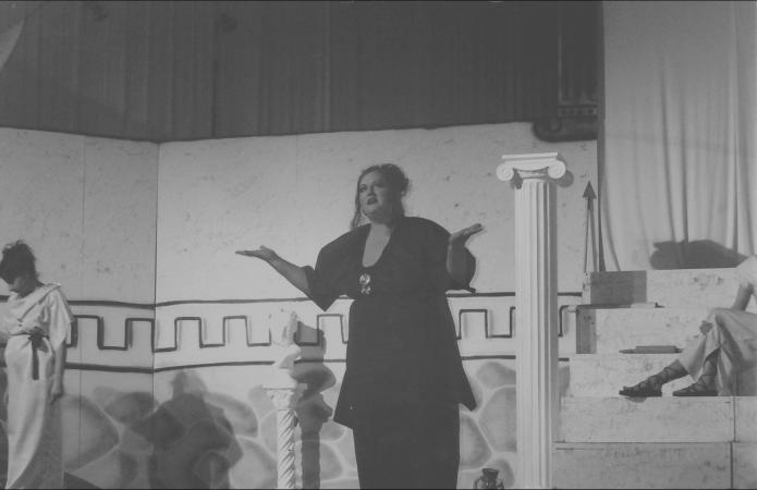 Die Athenerin Lysistrata trommelt die Frauen aus den vom Krieg betroffenen Städten zusammen. Gemeinsam mit diesen will sie Griechenland retten. Davon sind Kalonike, Lampito, und Myrrhine begeistert, sie alle sehnen sichnach ihren Männern, die in den Krieg gezogen sind. Die Männer müssen jedoch zum Frieden gezwungen werdenund so lautet Lysistratas Plan: unnachgiebige Verweigerung, solange noch gekämpft wird.Trotz anfänglicher Empörung der Frauen kann Lysistrata sie schließlich überzeugen. So schwören siegemeinsam, keinen Mann zu sich kommen zu lassen. Lysistrata besetzt außerdem mit alten Frauen die Akropolis, die den Staatsschatz beherbergt.Bald ziehen die Männer heran. Doch, ihrer Stärke bewusst, verteidigen sich die Frauen immer wieder. Auch demRatsherrn trotzen sie. Sowohl ihn als auch die Männer demütigen sie.Doch die Männer bleiben standhaft und wollen sich nicht geschlagen geben. Die Frauenschar hingegen beginnt,schwach zu werden und das bekümmert Lysistrata. Sie sind alle mannstoll und versuchen, sich mit denirrsinnigsten Ausreden aus der Akropolis zu schleichen. Doch Lysistrata hält sie zurück und berichtet vom Orakel, das klar genug von einem Sieg der Frauen spricht. Bald darauf erleben die Frauen in der Burg ihren ersten kleinen Triumpf. Ein vor Liebe kranker Mann kommtgelaufen. Kinesias will seine Frau Myrrhinel. Diese lässt sich gemäß den Anweisungen Lysistratas zunächst zum Schein auf das Liebesspiel mit ihm ein. Sie umgarnt ihn, reizt ihn, bevor sie ihn dann - im wahrsten Sinne desWortes - stehen lässt und an den Friedensschluss erinnert. Der verlassene Kinesias sieht den Krieg nun auch als unglückbringende Dummheit und will für den Frieden stimmen.Auch die Spartanerin Lampito kann von liebeskranken Männern berichten, die seit einiger Zeit ein hartes Lebenführen. Nur der Chorführer weigert sich zunächst noch, seine Fehler zuzugeben, doch die überraschendzärtlichen Worte der Chorführerin überzeugen schließlich auch ihn.So kommt es endlich zum Friedensschluss zwischen den verfeindeten Städten, aber auch zwischen Männern und Frauen. Gemeinsam ziehen alle auf die Akropolis zum Fest, wo sie vereint ein Loblied auf die Göttinnen undGötter und auf den Frieden der Liebe anstimmen. Athener FrauenLysistrataHeike WestermannKalonikeIna KassnerMyrrhineMelanie KassnerTimäaBetina RichterPeithoHeike HöpkeLeänaBarbara SteinkampAndere griechische FrauenLampito (Sparta)Betina WolkPamphile (Böotien)Bettina RichterGlyke (Anagyros)Barbara SteinkampMika (Korinth)Heike HöpkeChor der alten WeiberStratyllis (Chorführerin)Elisabeth MatthiesKrytillaBettina RichterKalikeBetina WolkRhodippeBarbara SteinkampSouffleuseMechthild DropMaske Susanne SchnalkeLayout Heike WestermannBühnenbau Thomas RosePaul FrankeFrank VogelsangBühnengestaltungSimon VargasTechnik WESTPOINTUrsula Schulte im RoddeCateringBernhard StrickerPresse Siegfried HerbermannHomepage www.hackstedt.comFranz StockmannAthener MännerDer Probulos (Ratsherr)Ulrich SchwennePolizist 1Marc DetertPolizist 2Karsten BeermannKinesias (Ehemann Myrrhine)Karsten BeermannManesUlrich SchwenneBupalosKarsten BeermannSpartanerHeroldMarc DetertAgis (Unterhändler)Franz StockmannNikonSiegfried ThiemannChor der alten MännerStrymodoros(Chorführer)Uwe Faber DrakesKarsten DuttPilorgosFranz StockmannLachesSiegfried ThiemannLYSISTRATAhier geht es zum Fotoalbum