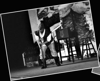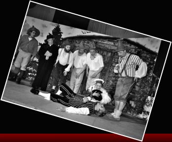 Das Leben oder Bemühungen mit untauglichen Mitteln am untauglichen ObjektSie betreten das Theater auf eigene Gefahr! Spiel oder nicht Spiel, das ist hier die Frage! Wir wissen natürlich auch, dass wir nichts wissen!Das aber wissen wir!Nicht alle Fragen wollen eine Antwort, warum auch?Was hat die Wirklichkeit mit der Realität zu tun? Zunächst muss gesagt werden, dass wir verrückt sind.Das Geschehen setzt einund führt zu keinem sinnvollen Schluss. !nrednä gnuthcirkcilB eid run tssum uDWir sind wir und wer bist du? Absurdität ist die Abwesenheit von Sinnhaftigkeit!Wer erkennen will, muss zuvorin richtiger Weise gezweifelt haben. Theater unterbreitet den Menschen Wahrheiten,die sie aufs Äußerste verwirren.Noch kannst du wieder gehen!Franz StockmannWILLI TELLMelchtalMaria BeermannBaumgartenChristian RisseUlrich der SchmiedUlrich SchwenneStauffacherKarsten DuttWilhelm Tell / Der RegisseurMarc DetertWalter FürstSiegfried ThiemannPfarrer RösselmannFranz StockmannFrau von AttinghausenMartina Große-KettlerUlrich von RudenzUwe FaberGesslerKarsten BeermannFrau von HarrasMelanie KassnerBerta von BruneckBetina WolkGertrud FürstBarbara SteinkampHedwig TellIna KassnerHildegard TellChristina WolkErzählerin 1Heike WestermannErzählerin 2Elisabeth MatthiesKellnerin, HänderlerinSouffleuseMarlen KrügerMaske Susanne SchnalkeLayout Heike WestermannBühnenbau Thomas RoseBühnengestaltungUwe FaberTechnik WESTPOINTUrsula Schulte im RoddeMartin LintkerCateringBettina RichterPresse Siegfried HerbermannHomepage www.hackstedt.comFranz StockmannDas Original von SchillerIn seinem letzten Stück stellt Schiller den Freiheitskampf eines unterdrückten Volkes dar. Der Burgvogt Gesslerals Stellvertreter des Kaisers von Habsburg soll die Macht des Kaisers und damit die Handelswege nach Italiensichern. Wilhelm Tell übernimmt die Rettung des Schweizer Bergbauern Baumgarten, der einen Burgvogterschlagen hat, weil dieser Baumgartens Frau vergewaltigen wollte. Als Rache wird die Hütte des Bauernniedergebrannt. Ein weiterer Akt kaiserlicher Willkür ist die Aufstellung der Stange mit einem Hut, den jeder Vorübergehendegrüßen muss. In einer nächtlichen Zusammenkunft am Rütli schwören sich die Vertreter der Kantone Schwyz, Uri und Unterwalden Treue. Der Streit spitzt sich zu, als Tell und sein Sohn Walter festgenommen werden, weil sie den Hut nicht gegrüßthaben. Gessler zwingt Tell, einen Apfel vom Kopf seines Sohnes zu schießen, was diesem auch gelingt. Nachdem deutlich geworden ist, dass tell mit einem zweiten Pfeil Gessler erschossen hätte, wenn er seinen Sohn getroffen hätte, wird er erneut verhaftet. Bei einem Unwetter gelingt ihm aber die Flucht und in der hohlen Gassein der Nähe von Küßnacht lauert Tell Gessler auf und erschießt ihn aus dem Hinterhalt. Dies ist das Signal zumAufstand in der ganzen Schweiz.Die Persiflage von Claus-Hinrich MüllerDer Originalstoff wird durch Spott in ein anderes Licht gerückt. Die Theater-AG in Bad Laer soll den KlassikerWilhelm Tell einüben. Sie merkt aber bald, dass weder sie selbst, noch das Publikum verstehen, um was es eigentlich geht. Sobeschließen sie daraufhin, das Stück zu entstauben und ein wenig Pepp hineinzubringen. Personen werden verändert (Männerrollen mit Frauen besetzt), die Sprache zum Teil entrümpelt (... sprich dudoch nicht auch noch antiquiert...), Filmszenen nachgespielt, Rückblenden eingebaut, das Publikum aktiviert usw. Die eigentliche Geschichte aber bleibt erhalten. Lediglich die Motive einiger Personen werden näher unter die Lupe genommen: Handelte Gessler tatsächlich wieein Tyrann? Wurde Tell in eine Rolle gedrängt? Allein der Regisseur hält am Original fest...hier geht es zum Fotoalbum